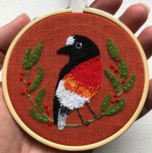 In this workshop, participants will be inspired by Australian and non-Australian birds to create beautiful Christmas bird collages out of fabric scraps and embellish the birds with simple hand-embroidery using a variety of threads and texture in a 4-5 inch embroidery hoop.