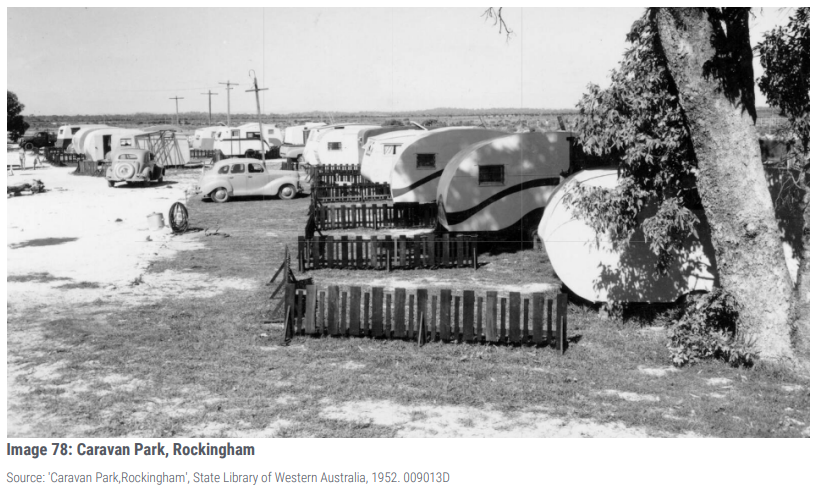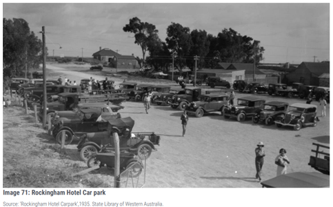 The conservation of the Rockingham Roads Board (fmr) in its art deco style provides a connection to the historical development of Rockingham associated with the 1915-1949 Inter-War period of development and the Post War transformation of Rockingham townsite from 1950-1971, when roads were widened to cater for increased motor traffic. During the 1970's, Rockingham experienced significant population growth with many new subdivisions established for residential development. The Rockingham Roads Board (fmr) played a significant civic role during this period of economic prosperity.