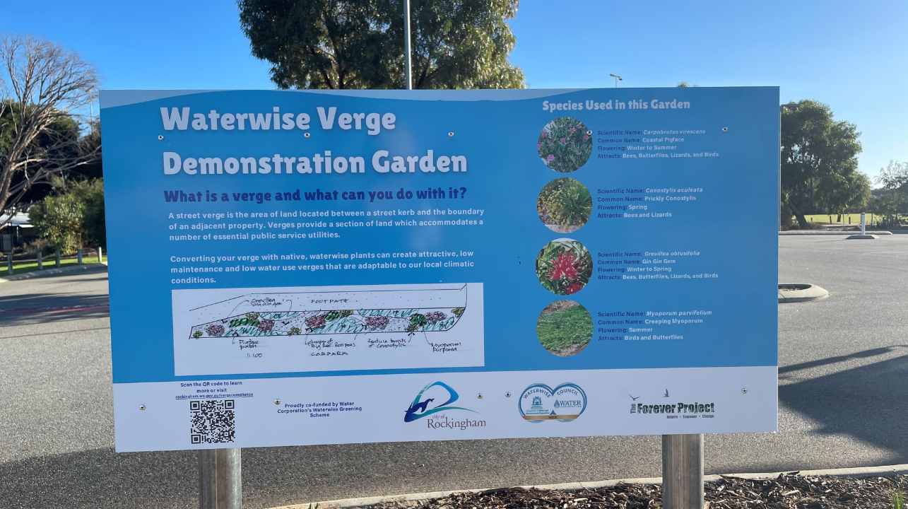 Two waterwise verge gardens were installed in early 2025 with support from the Forever Project and community volunteers. You can find these demonstration gardens at: